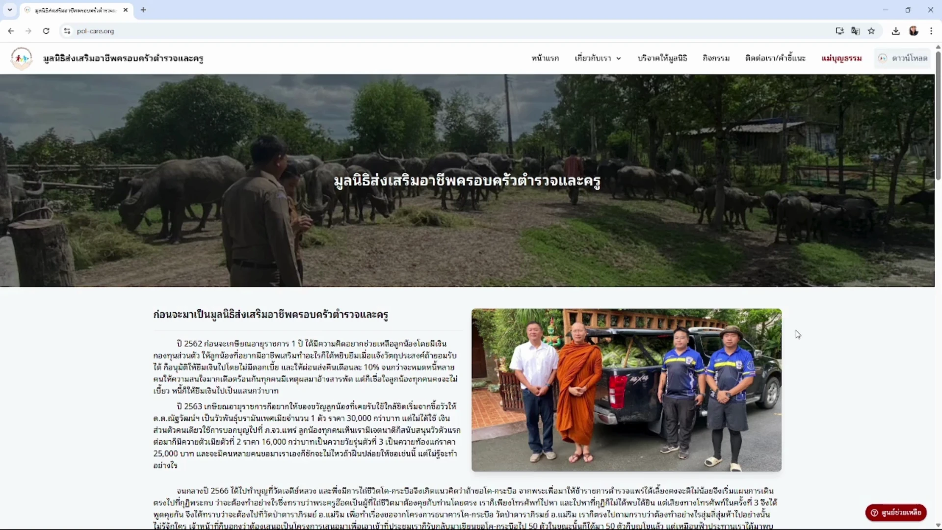 ปี 2563 เกษียณอายุราชการก็อยากให้ของขวัญลูกน้องที่เคยรับใช้ใกล้ชิดเริ่มจากซื้อวัวให้ ด.ต.ณัฐวัฒน์ฯ เป็นวัวพันธุ์บรามันเพศเมียจำนวน 1 ตัว ราคา 30,000 กว่าบาท แต่ไม่ได้ใช้ เงินส่วนตัวคนเดียวใช้การบอกบุญไปที่ ภ.จว.แพร่ ลูกน้องทุกคนเห็นเรามีเจตนาดีก็สนับสนุนวัวตัวแรก ต่อมาก็มีควายตัวเมียตัวที่ 2 ราคา 16,000 กว่าบาทเป็นควายวัยรุ่นตัวที่ 3 เป็นควายท้องแก่ราคา 25,000 บาท และจะมีคนหลายคนขอมาเราเองก็ชักจะไม่ไหวถ้าฝืนปล่อยให้ขอเช่นนี้ แต่ไม่รู้จะทำอย่างไร