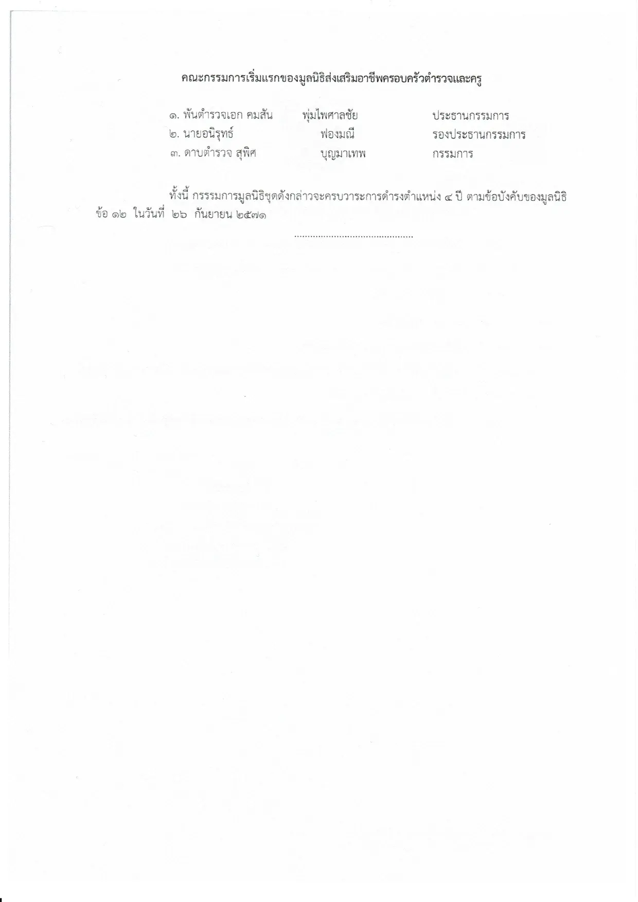 หลักฐานการจดมูลนิธิ